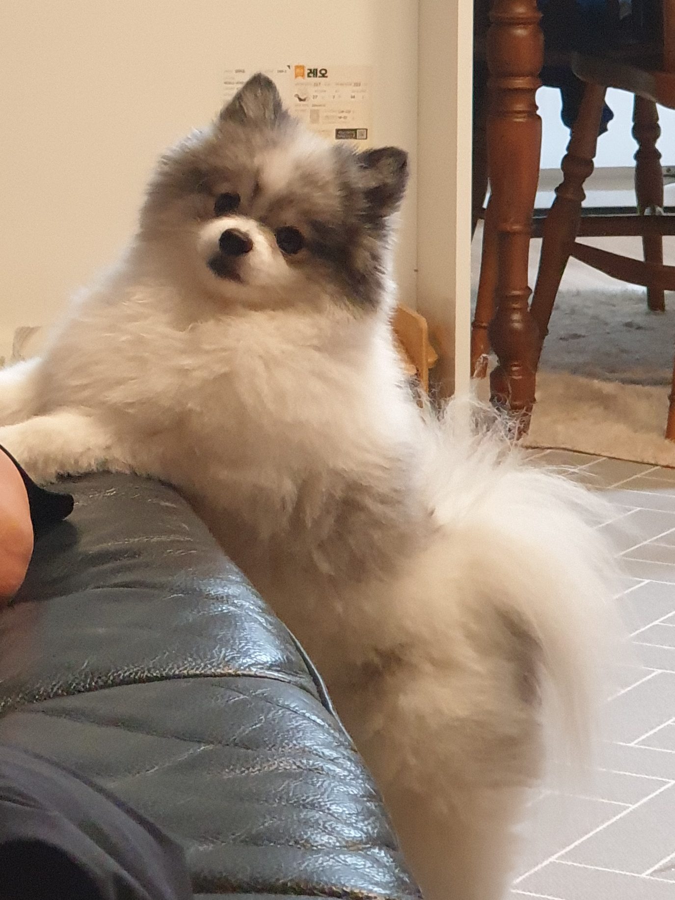 I love my dog, Leo. He is a three-year-old Pomeranian, and my family and I often call him either ‘Leo’ or ‘Reo.’ Every time I visit my parents’ house, Leo welcomes me by waving his tail very quickly, making turns, which we call the ‘happy dance,’ and dashing a little strip repeatedly. He is just the same as my little brother.